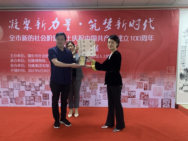 为庆祝中国共产党成立100周年,充分表达广大新的社会阶层人士热爱党、热爱祖国的家国情怀,烟台市社会组织联合会、新的社会阶层人士联谊会于2021年6月26日上午9:30在佳隆古玩城展厅举办了“凝聚新力量·筑梦新时代” ——全市新的社会阶层人士庆祝中国共产党成立100周年艺术作品展。