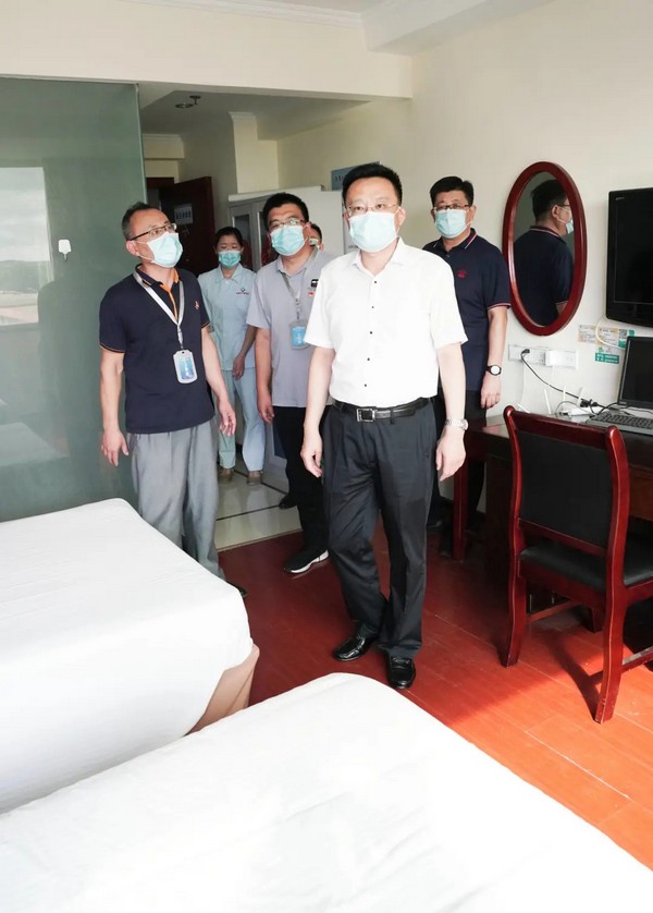 市领导详细查看了隔离服务点房间设施配套情况并听取了相关情况汇报后,强调,要严格落实好集中隔离服务点的设置标准及管理规范,做好严格消毒、严格防护等各项工作,科学有效地对集中隔离服务点进行防疫和管控,要进一步做好医学隔离观察人员的餐饮服务,保障食品卫生安全等工作,时刻关注其需求和其他相关情况,为集中隔离观察人员提供热情细致、周到暖心服务,做好心理疏导,随时掌握身体状况,加强人文关怀,保障他们安心度过医学隔离观察期。