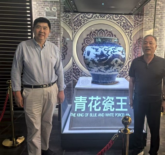 在佳隆博物馆馆长栾董事长的亲自陪同下,钱伟鹏先生一行参观了佳隆博物馆的五大展馆。大家对馆藏珍品赞不绝口,尤其对镇馆之宝“青花龙纹大罐”叹为观止。在佳隆古玩会议室,钱教授就中国瓷器发展、对世界文明的贡献,以及瓷器鉴定方面的知识、文物回流追讨工作的经历等,深入细致的与大家进行了分享。钱教授见解高深,治学风范严谨,为国家追讨遗失海外文物的珍贵事迹,更让与会学员获益匪浅。课后,钱伟鹏教授带领学员走进佳隆古玩业户店内进行了现场教学与淘宝。