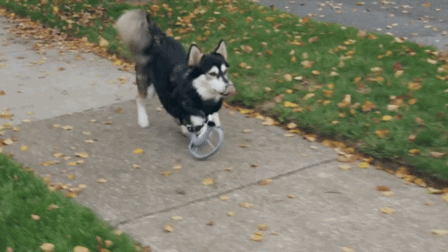现在一只名为Derby的小狗在3D打印技术的帮助下,让它从原本相对而言不太爱动变得热爱了奔跑,就像GIF图中所展示的那样: