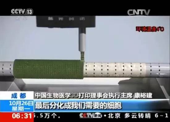 中国全球首台3D血管打印机:2分钟造10厘米血管