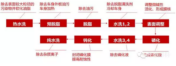 为获得汽车涂层的耐久性、耐腐蚀性,汽车车身都采用磷化处理作为涂装的前处理,磷化膜的功能是提高涂布在其上的涂膜(电泳涂膜)的附着力和耐蚀性。