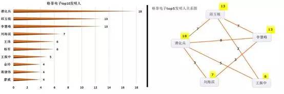 我们对这些公司的top10发明人进行排名,并对top5发明人之间的合作关系绘制了简单关系图,具体情况如图6: