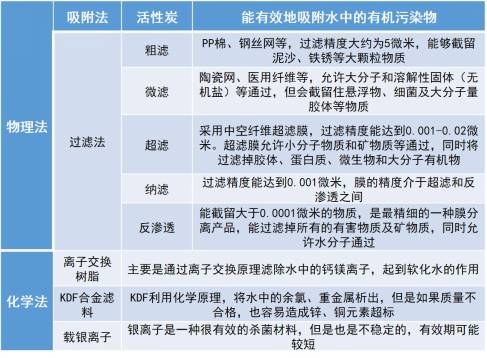 按照净水器的滤芯净化水的原理,总的分为两类,一类为物理方法,一类为化学方法。