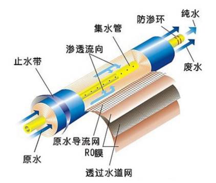 反渗透通常使用非对称膜和复合膜,所用的设备主要是中空纤维式或卷式的膜分离设备。