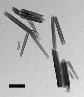 高岭土粘土纳米管的内径为10-20纳米,外径为40-70纳米,长度为500-1500纳米,内部由Al2O3构成,而外部主要是SiO2。埃洛石的内腔可通过蚀刻控制在管体积的20-30%,其作为一个纳米容器可用于化学药剂的装载和持续释放。埃洛石管可以包住酶,以提供更长的储存、更高的温度和更多的功能,并且管的开口还允许小物体分子递送进管内部进行生物催化。