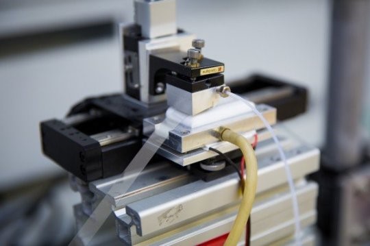 一个火柴盒尺寸的硅片,使PEDOT:PSS薄层在各种表面上扩展开,表面包括玻璃、硅、和聚对苯二甲酸乙二酯-用于饮料容器的透明聚酯树脂,速度达到每分钟6米。通过改变速度和调节工艺温度,研究人员能够生产不同厚度和电导率的透明薄膜,也使PEDOT和PSS聚合物分离成层,更大地增加了膜的导电率。他们制备的最好薄膜打破了目前PEDOT:PSS的导电率记录。