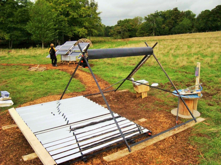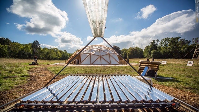 目前全球主要工业国的能量消耗中的25%是以热能的形式获得的,其中的大部分又是通过化石燃料产生的。Solar OSE(Open Source Écologie开源生态技术)团队在POC21上展示了他们设计的可持续性能源技术——一个太阳能聚光器。该聚光器设计简单,能够利用免费的太阳能产生能量,足以满足一些小型的工业和手工业的需要。他们自己DIY的利用线性菲涅尔反射器阵列聚集太阳能的设备能够将蒸汽温度加热到250℃。