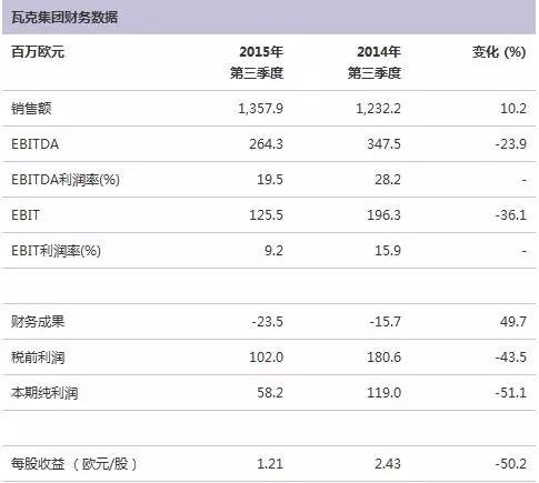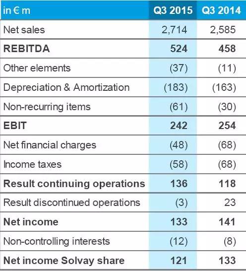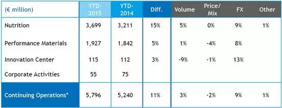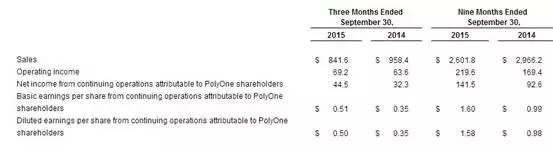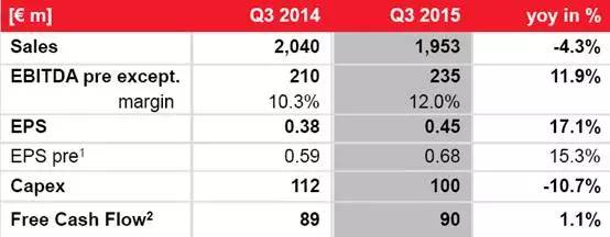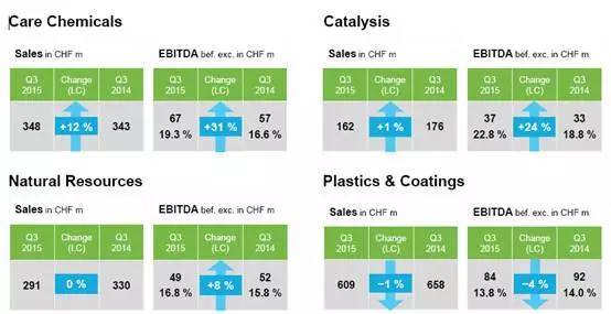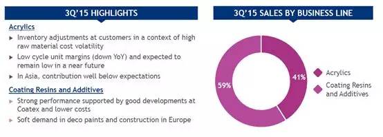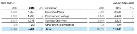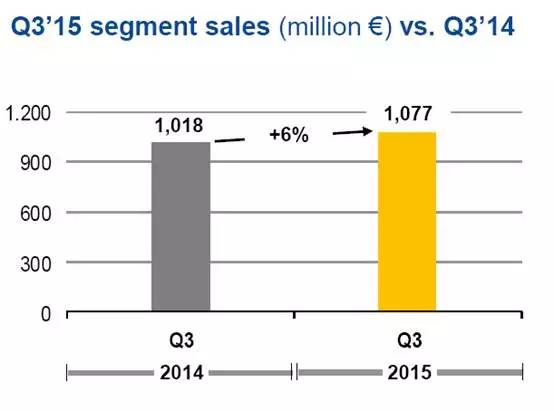 聚合物业务:2015年第三季度实现销售额总计3.130亿欧元(上年同期: 2.880亿欧元), 同比增加近9%;