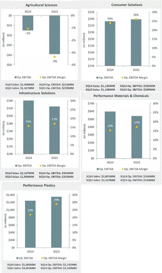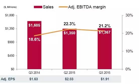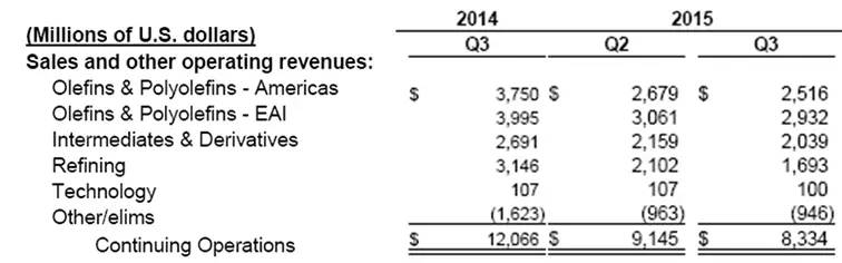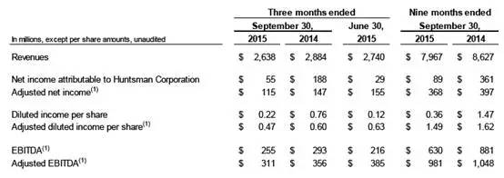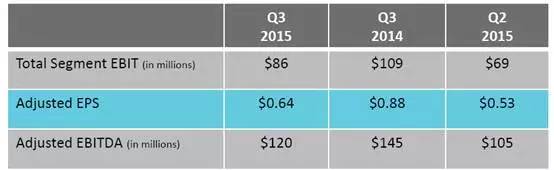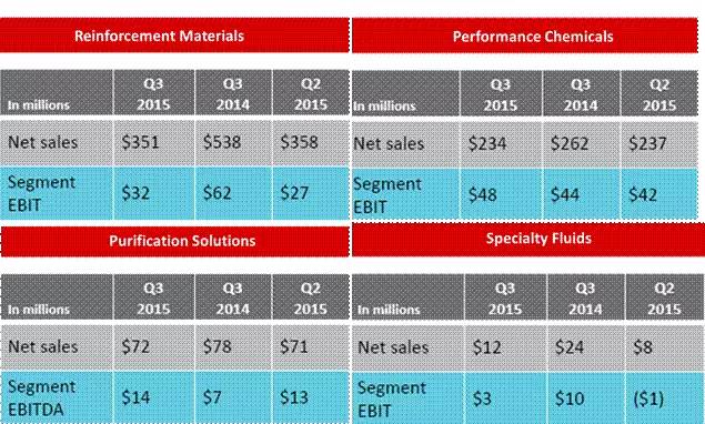 特种流体及中间体:营业利润下降至$ 4800万美元,2014年第三季度为$9600万美元。