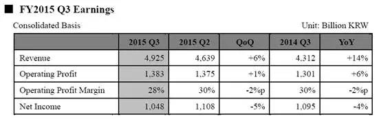 净利润:1.048万亿KRW,较上年同期下降2%