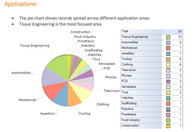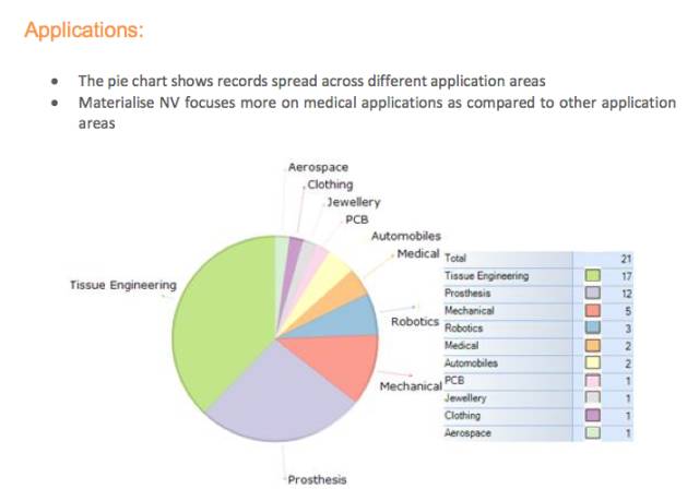 Materialise的专利应用范围包括组织工程,假体,机械,机器人,医疗,汽车,PCB,首饰,服装,航空航天