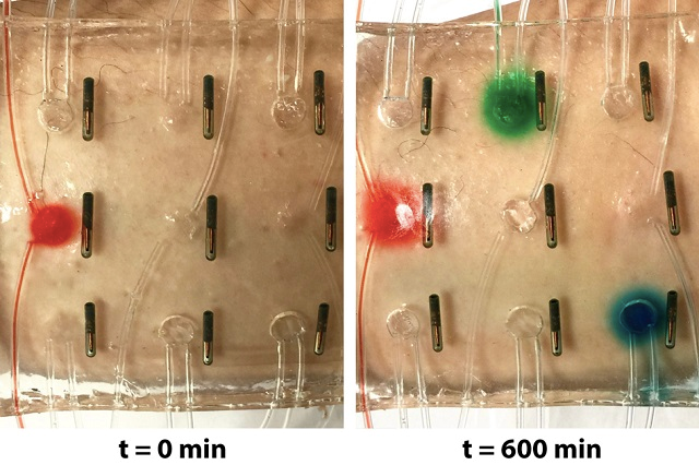 研究表明,当这种材料放置在身体之中,且拉伸时,它可以监测人的皮肤温度,并且可根据传感器的指示释放药物。这种技术可迅速用于治疗皮肤烧伤或者其他皮肤条件。“这是一种多功能矩阵。其独特之处在于,当传感器感觉到异样时,例如温度的异常上升等,该装置就可根据需要在特定位置释放药物,这种药物是从内置的药物中选择的一种,可在这种水凝胶中扩散,并维持一段时间。”Hyunwoo Yuk说。