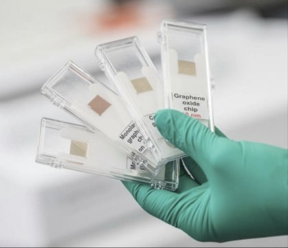 该专利的作者Aleksey Arsenin 和 Yury Stebunov希望可以通过这种方式替换掉现在使用的传感器芯片。在特定条件下,使用石墨烯和氧化石墨烯作为金属薄膜和生物层之间的连接层可有效提高生物探测器的灵敏度。使用氧化石墨烯生物传感器芯片来分析DNA杂交反应的研究论文发表在美国化学协会的《应用材料与界面》杂志上。除了比普通商用产品的灵敏度更高,这种传感器芯片拥有生物特异性,且可以多次使用,从而降低成本。
