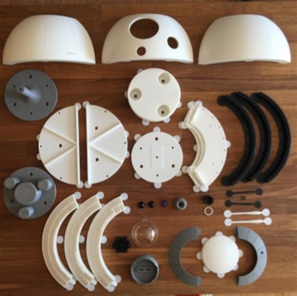 第一个要介绍给您的3D打印BB-8机器人设计来自Jean-René Bédard,这是一位经验丰富的软件工程师和兼职创客。他设计的BB-8实际上就是一个好玩的玩具机器人了:全3D打印、远程控制、搭载了一个基于Arduino的机器人平台、仅靠两个轮子就能自我平衡、能发声,而且装有多个可编程的LED。