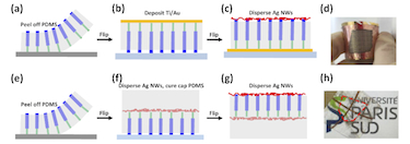 研究团队通过先将氮纳米线装入到聚二甲基硅氧烷(PDMS)层后再从衬底分离的方法制备该设备。由此产生的柔性二极管可以是透明或半透明的且数平方厘米宽。它们是由直径为数百纳米和20微米高的微小纳米发射器组成。