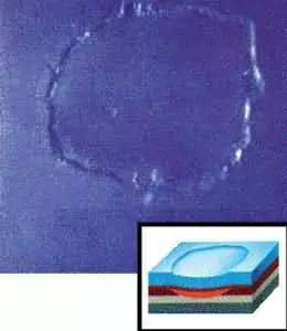 从漆层表面可以看到底层有污染区的轮廓 ,或出现多种形状的无光斑点 。