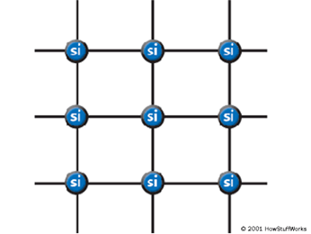 在硅晶格中,所有的原子与邻近的四个原子完美结合,无自由电子是电流导电。这使得硅晶体是绝缘体而不是导体。