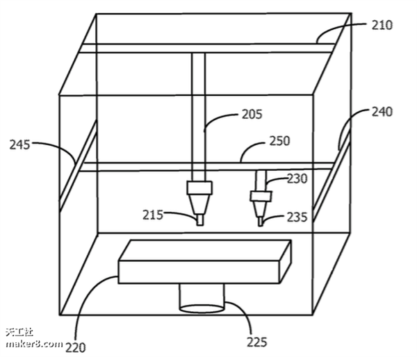 这项专利宣称:“使用此工艺能够高效创建包括多种颜色的3D对象。它能够扩大3D打印机可打印对象的范围,并将其扩展到更多的日常对象上。例如,消费者可以使用这种3D打印机在家里打印玩具。”