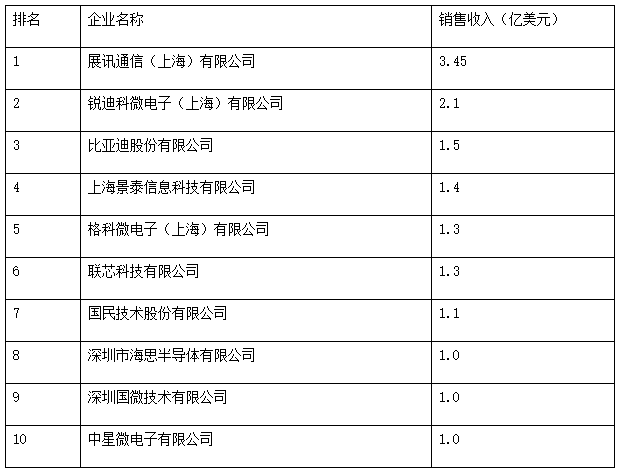 2010年我国集成电路设计企业排名