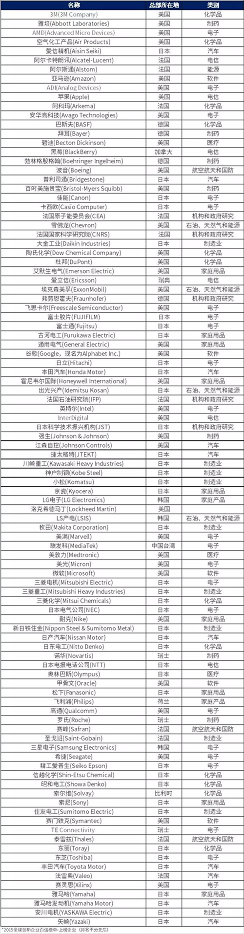 (附榜单)2015年全球创新企业百强,中国大陆无一家企业入选