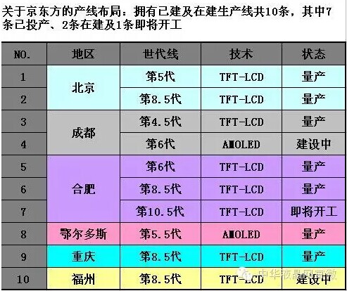 BOE(京东方)合肥10.5代线主要生产65英寸以上大尺寸超高清液晶显示屏,设计产能为每月9万片玻璃基板,玻璃基板尺寸为3370×2940mm,总投资400亿元,预计2018年第二季度投产,届时BOE(京东方)将跃升全球显示行业三甲之列。BOE(京东方)自主建设的全球最高世代线---合肥10.5代线,其整体设备的自动化和智能化水平及采用的核心工艺技术将达到业界最高水平。该产线的建设投产将开启全球显示领域新的里程碑,引领大尺寸超高清显示新时代。