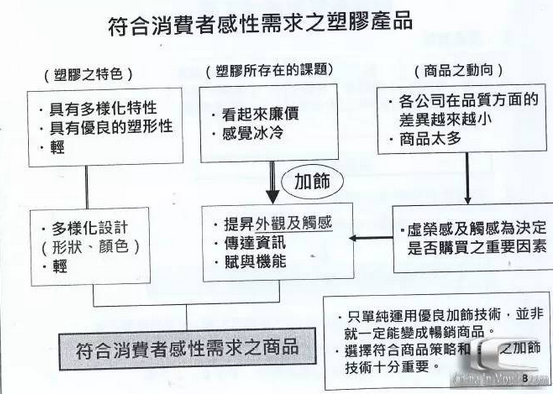 符合消费者感性需求的塑胶产品除了需要提升外观和触感,还需要传达资讯,具有一定的机能。选择符合商品策略和目的之加饰技术十分重要。
