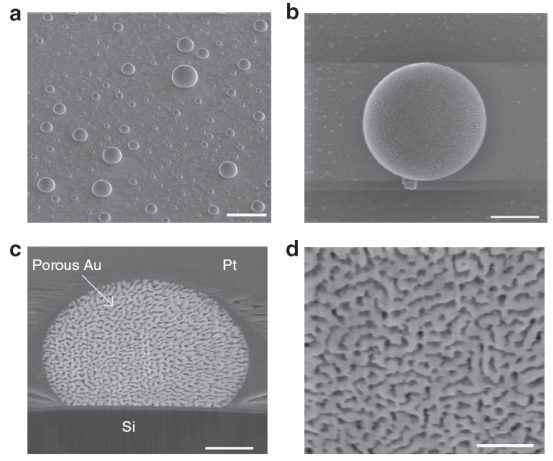 自然界中的单晶材料常常以错综复杂的多孔状形貌呈现出来,而非传统认为的平面结构。 Khristosov 等人受到生物材料的启发,以一种十分简单的方法制备出金的纳米多孔单晶。这种晶体生长于共晶组分的固化过程中。他们用理论模拟的方法揭示了单晶中是如何产生多孔结构的,以及晶体尺寸的影响因素。之所以可以保留单晶的性质是因为全结晶过程要比两步连续成核的过程要更快。他们的工作证明,通过对生长条件的控制,是完全有可能制造出单晶纳米多孔晶体材料的。(Nature Communications DOI : 10.1038 / ncomms 9841 )