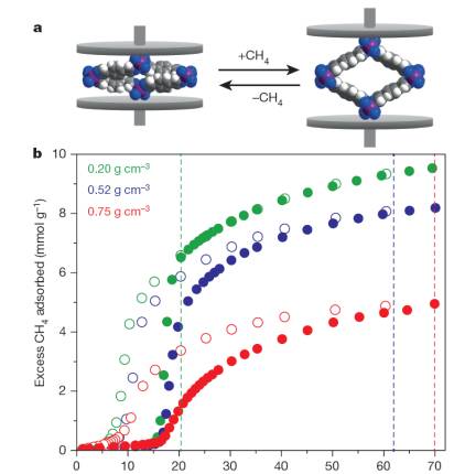 (Methane storage in flexible metal–organic frameworks with intrinsic thermal management)