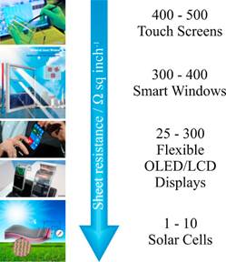 图4.随不同类型石墨烯的电阻率不同,潜在的应用。