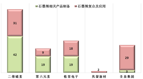 我们对这5家公司的石墨烯相关专利进行解读后发现,这些专利申请主要涉及两方面,即石墨烯的制备以及石墨烯复合与应用,对这些专利申请进行简单分类,具体情况如图9所示: