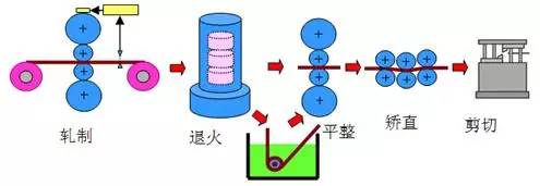 轧制是生产变厚度钢板工序的核心,但是得到满足冲压成形需要的钢板还要经过一系列的后续工艺过程,例如退火、平整、涂层、剪切、涂油等等。退火可使轧制后的金属形变晶粒重新转变为均匀的等轴晶粒,消除形变强化和残余应力的影响,形成各向同性的坯料以利于进一步的冲压成形。平整工艺可消除材料的屈服平台,并获得冲压所需要的良好的板形性能,为板料平顺输送和成形过程中板料的精确定位提供保障。表面涂油可有效地进行板料在运输和存放期间的防腐,同时也会增加坯料冲压过程中的润滑效果。
