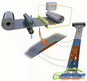 高永生:变厚板零件的坯料是利用具有特殊设计的压下厚度自动控制系统高性能轧钢机,根据精确设计的板料厚度分布进行实时厚度控制,从而得到的薄板在沿着钢板轧制方向上具有预先定制的精确的变截面形状。厚度精度可以精确地控制在 0.05mm之内。在长度方向上,轧机根据钢板测厚仪进行精确定位,可使长度精度控制在2.0mm之内。