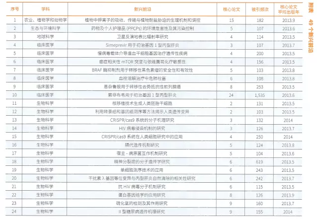 附49个新兴研究前沿: