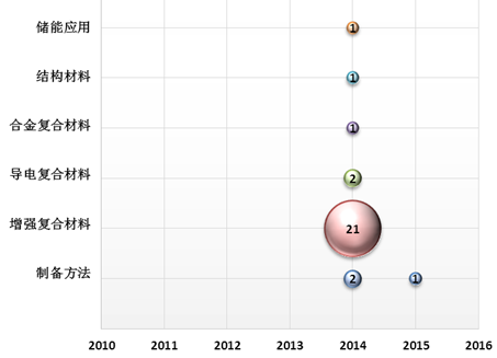 从上图可以看出,格菲电子的相关专利申请中,2013年以前,是以石墨烯制备相关技术为主,2014年后,除在石墨烯制备原有方向上继续研发外,开始扩展石墨烯的应用领域,进一步开发石墨烯的应用。