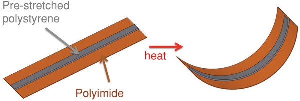 加热使得双层结构形状发生改变。