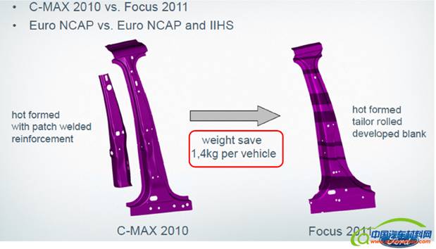 福特使用VRB技术制作B柱的例子是众所周知的。通过VRB技术改造,将B柱和其加强板合并成为一个零件,减重1.4kg,达10%