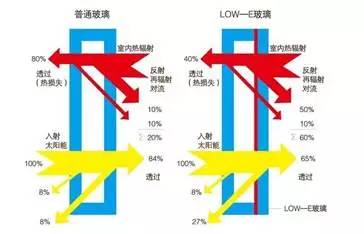 Low-E玻璃又称低辐射玻璃,是在玻璃表面镀上多层金属或其他化合物组成的膜系产品。其镀膜层具有对可见光高透过及对中远红外线高反射的特性,使其与普通玻璃及传统的建筑用镀膜玻璃相比,具有优异的隔热效果和良好的透光性。