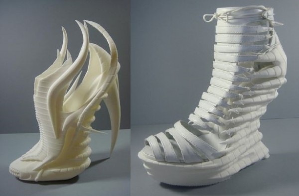 看起来3D打印技术已经席卷了时尚界,除了上面的诡异眼镜,还有3D打印的时尚高跟鞋。不得不说,看起来还真不赖;至少踢人会很痛。
