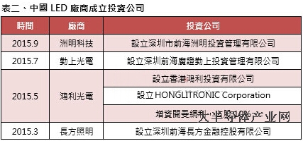 1.水平整合:LED封装厂商透过并购竞争同业以迅速扩大规模,进行资源整合、相互提升技术实力。例子包含鸿利光电收购斯迈得、瑞丰光电并购玲涛光电等。