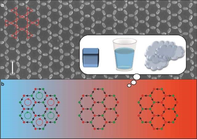 随着材料以连续渐进的方式冷却,在某一温度点,研究人员发现了材料的高度有序点,此时的邻近磁铁增多。温度进一步降低,材料的有序程度进一步变大。磁排序在这个高度有序阶段出现冻结。通过将水冷却成冰,水也表现出类似的行为。Heyderman说:“我们被这个事实震撼了,这种合成材料具有平常的相变现象。”