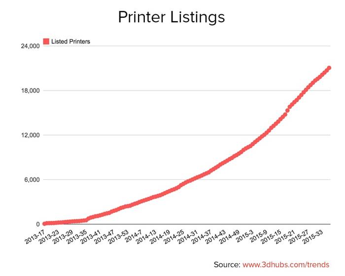 继上月突破20000台,九月3DHubs的打印机数量突破21000台。