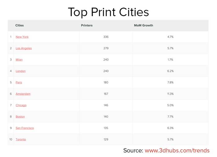 3DHubs是阿姆斯特丹的创业公司,目前拥有最大的3D打印机网络联盟。基于3DHubs在全球150多个国家登记的21000台3D打印机和每月成千上万个订单,3DHubs分析出全球3D打印机的喜好趋势。