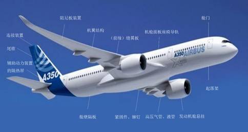 碳纤维复合材料具有质轻、高强、高模、耐高温、耐疲劳、导电、导热等特性,因此是一种先进的航空航天材料。碳纤维复合材料常用作飞机的机身、风叶层板、夹芯板等部位。