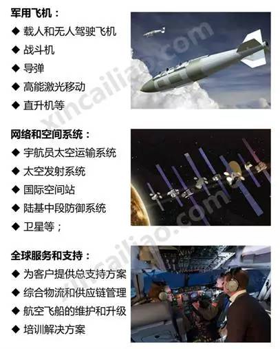 波音的主要产品包括商业和军用飞机、卫星、武器、电子防御系统、启动系统、先进的信息和通信系统等。