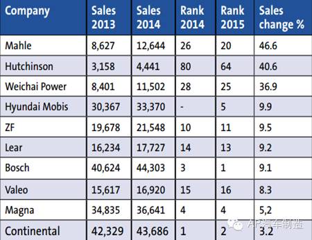 2015世界百强汽车供应商排名总览