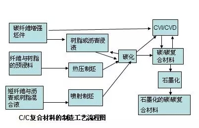 13.C/C复合材料的制造工艺有很多,主要包括坯体的预成型坯体、浸渍、碳化、致密化、石墨化合抗氧化涂层等工艺。如下图: