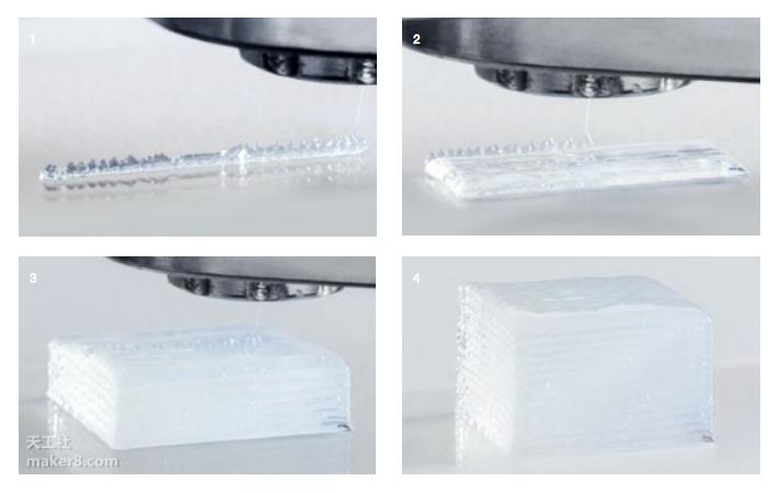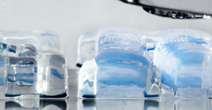 该技术的关键是要使用非常小滴的硅胶液进行打印,而且材料要通过一个小小的、专用的打印喷嘴。因为硅胶液滴需要既小、又精确地放置在打印平台上,所以标准的3D打印软件无法满足其要求,开发人员需要自己开发定制的软件方案。当第一层硅胶被打印时,硅胶液滴会合成一条细行,UV光速需要在不到一秒钟的时间里将其硫化。UV光的照射会使硅胶分子相互交连形成固态、柔软的弹性体材料。据天工社了解,目前该技术的打印速度仍然没有达到瓦克公司认为可以上市销售的标准,开发团队认为,他们最终将会改进其打印过程使其达到能够在一小时内打印100克硅胶的速度。