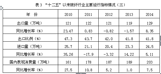 随着外贸出口的持续低迷和国内需求的稳定增长,“十二五”规划中提出的将出口比例降至30%的目标正在逐步实现,玻纤企业的内销比例明显提升。而在国际市场方面,一方面国内玻纤及制品出口的产品结构正在发生变化,玻纤织物等深加工制品出口比例明显提高,另一方面近年来重庆国际通过收购或控股,先后在巴西和巴林拥有了玻纤纱池窑生产线,巨石集团则在埃及和美国加紧建设自己的海外玻纤生产基地,行业逐步用海外投资来代替贸易出口,实现对全球市场的占领。
