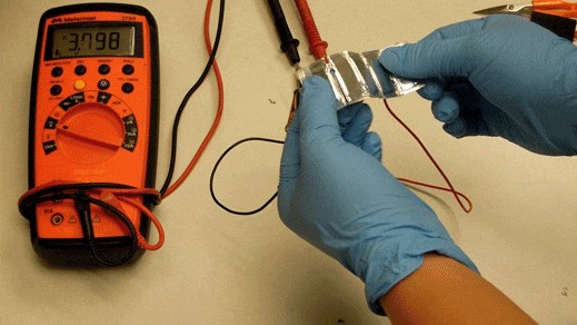 如图所示为研究人员演示的锂离子电池的电气性能,该电池可拉伸、弯曲、折叠。